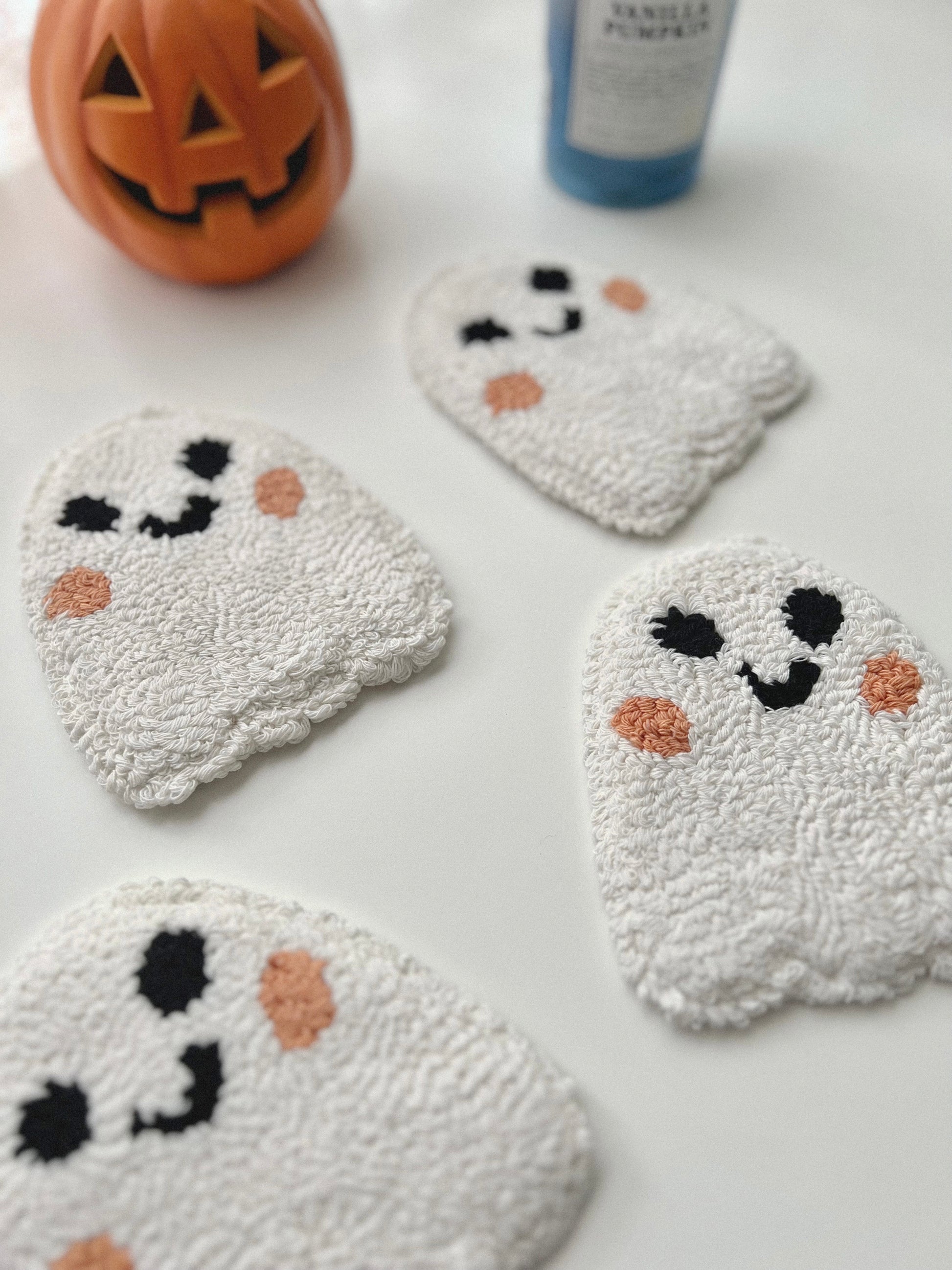 These adorable tufted ghost coasters are the perfect accessory for your mugs and tumblers. There may be slight variances with each crafted ghost coaster.