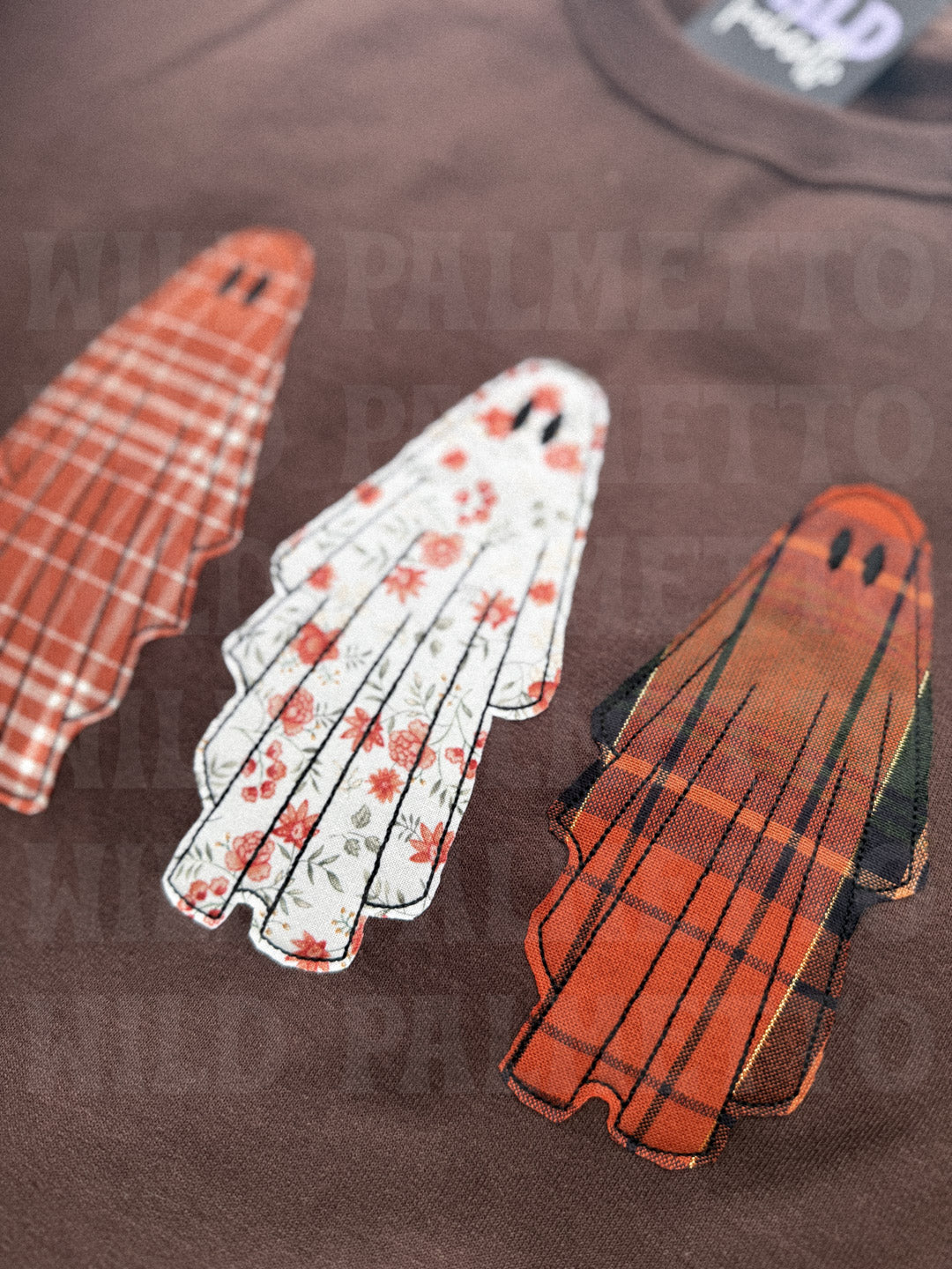 There will be slight variances with fabric design placement since these are made to order and the edges of each ghost are trimmed by hand, no 2 sweatshirts will be exactly alike.