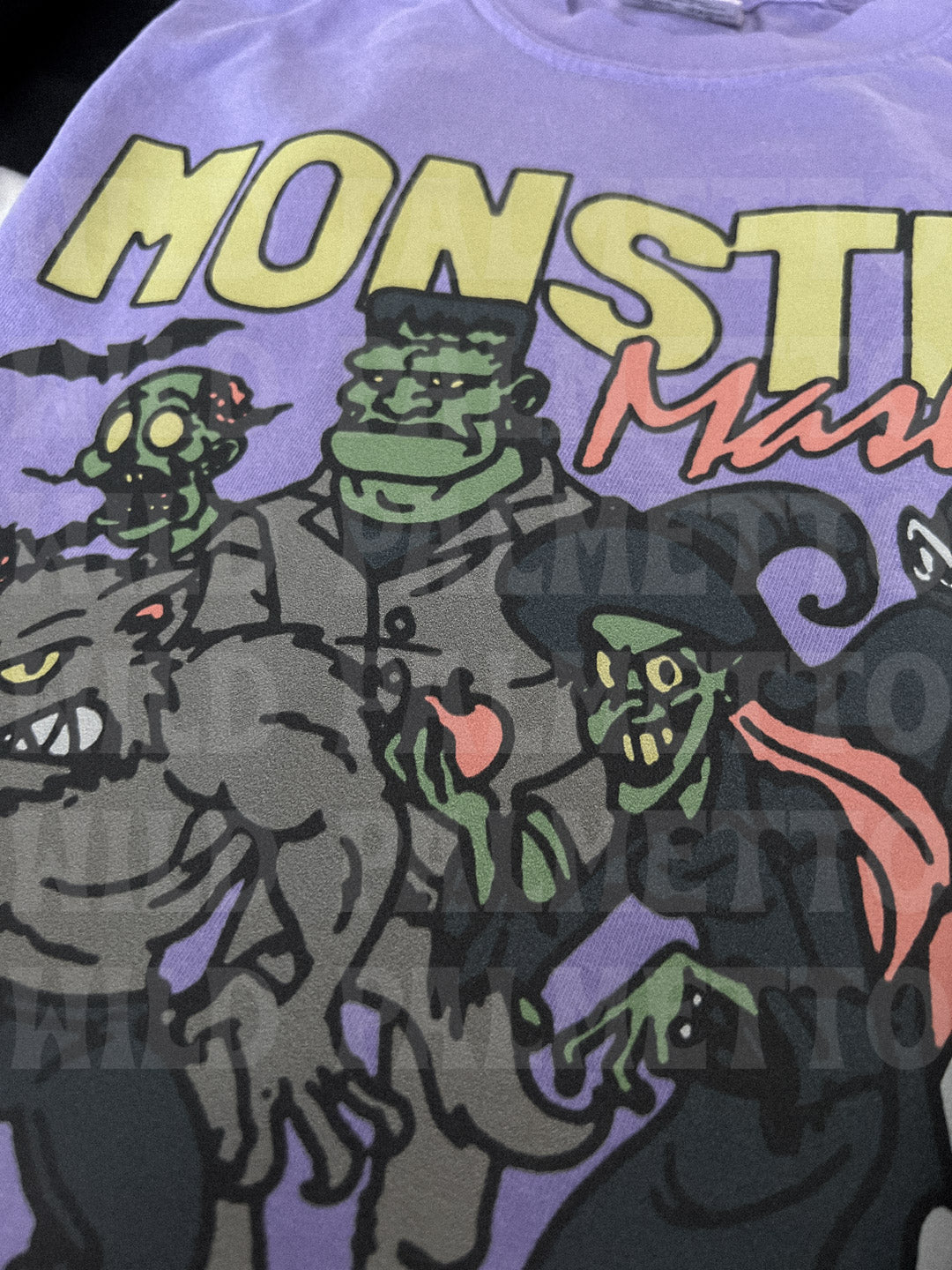 All graphics are direct to film prints and made to order. You can feel these prints, they are not printed directly on the garment. There may be slight variances since all items are hand crafted.