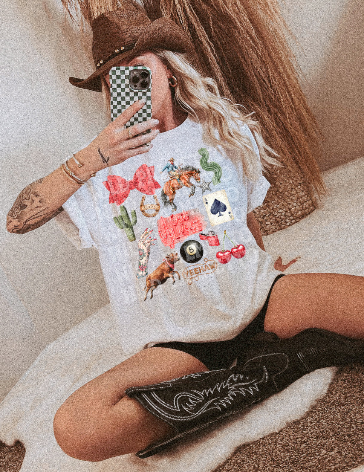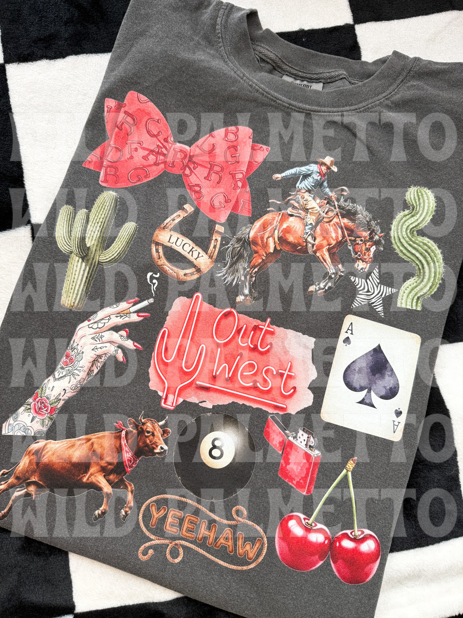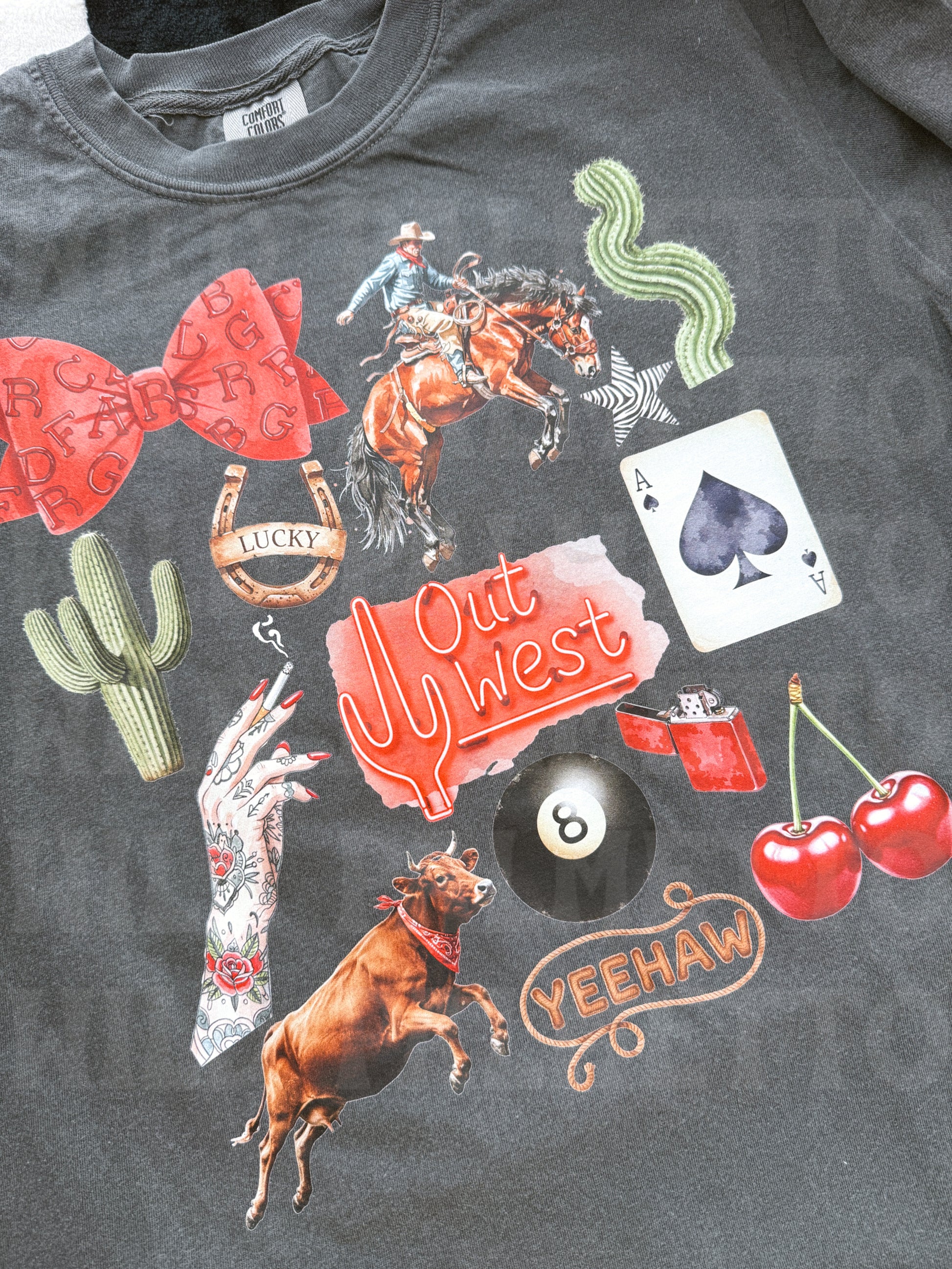 OUT WEST LUCKY WESTERN COLLAGE TEE